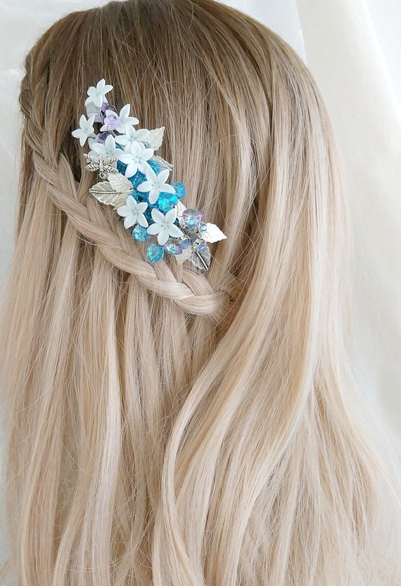 Blue Bridal Hair Comb Blue Flowers Headpiece Wedding Guest Etsy